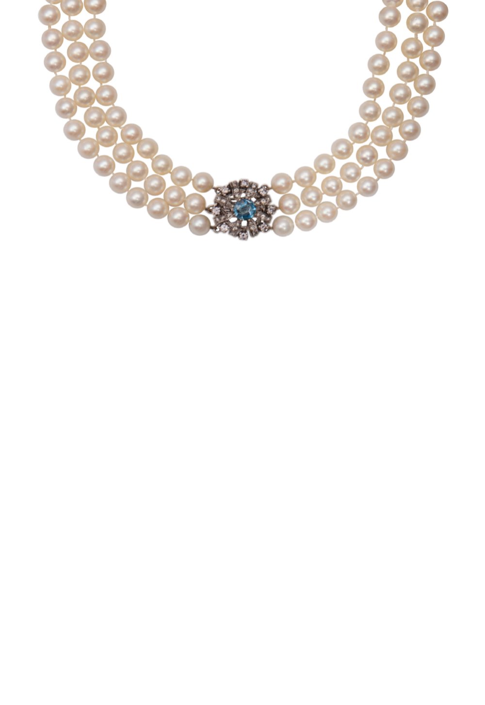 A cultured pearl, diamond and aquamarine